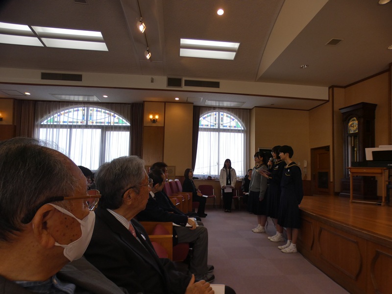 同窓会総会は、中講堂で行われました。冒頭の写真しかなくてすみません。令和8年度の生徒会長より、慰霊式への「折り鶴」参加をお願いしました。また、今年度の幹事学年の代表者より、今日の説明がありました。