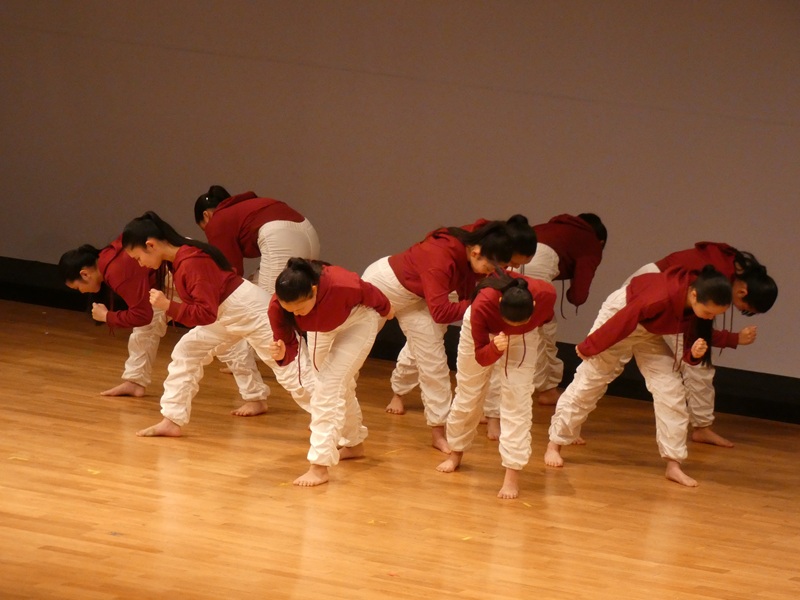 おかげさまでたくさんの皆様がご来校くださって、駐車場や受付の係はてんてこ舞い。でも、14時からのダンス部の自主公演は、2階席から見学させていただきました。