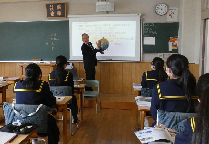 中1の英語では、AからZまで、単語の発音を丁寧に繰り返していました。先生の発音もきれいだし、リピートする生徒たちもいい発音!