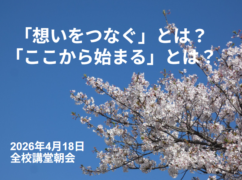 全校生徒への訓話で、120周年の統一テーマ「想いをつなぐ。ここから始まる。」についてお話ししました。