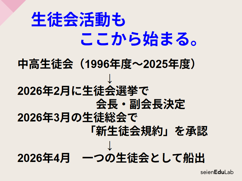今年から新たな生徒会活動がスタートします。その最高の決議機関である「生徒総会」にどう臨むか。未来の主権者としての生徒の皆さんに望む姿勢について説きました。