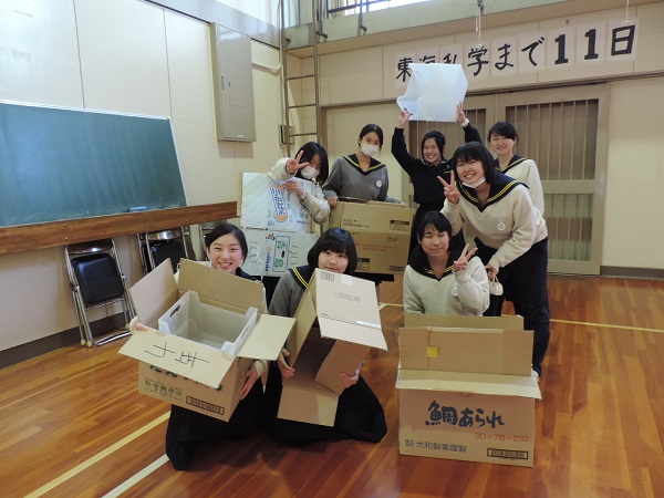昼休み、毎年恒例の「豆まき」が、今年は中学生徒会に加え、初めて高校生徒会も企画しての実施となりました。
