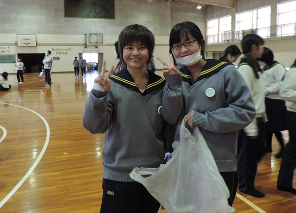 すでに高1、高2は、袋持参で体育館に詰めかけており、